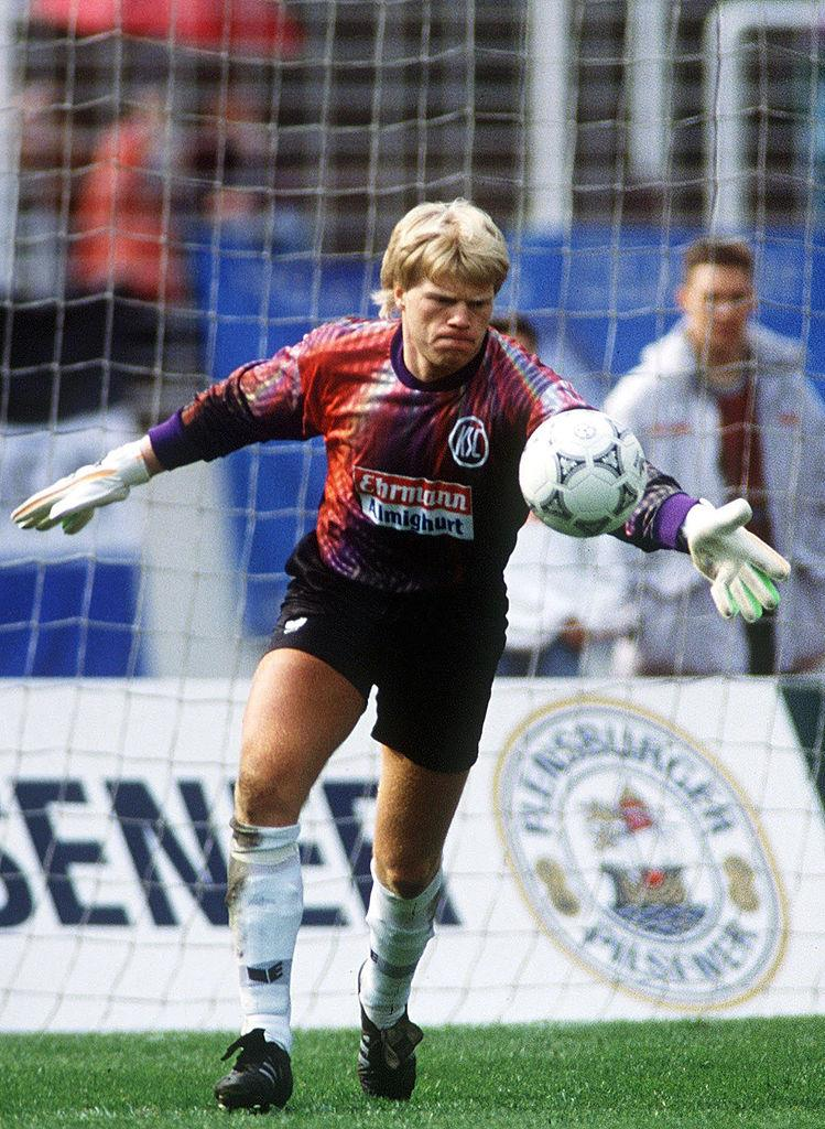 Начиналась же футбольная карьера Олли довольно прозаично – в 6-летнем возрасте маленького блондина в ДЮСШ Карлсруэ привел его отец. Помните, как начинается карьера фактически всех великих и не очень вратарей? Правильно, с опыта игры полевым игроком. Естественно, наш герой исключением не стал и поначалу активно поигрывал в полузащите (как и отец!.. Правда Кан-старший провел в Карслруэ за два сезона всего 11 матчей). И быть бы Оливеру хавбеком, если бы не подаренная дедом коллекция наклеек его будущего наставника – Зеппа Майера, где последний изображался в разных ракурсах, при этом ловя мячи.